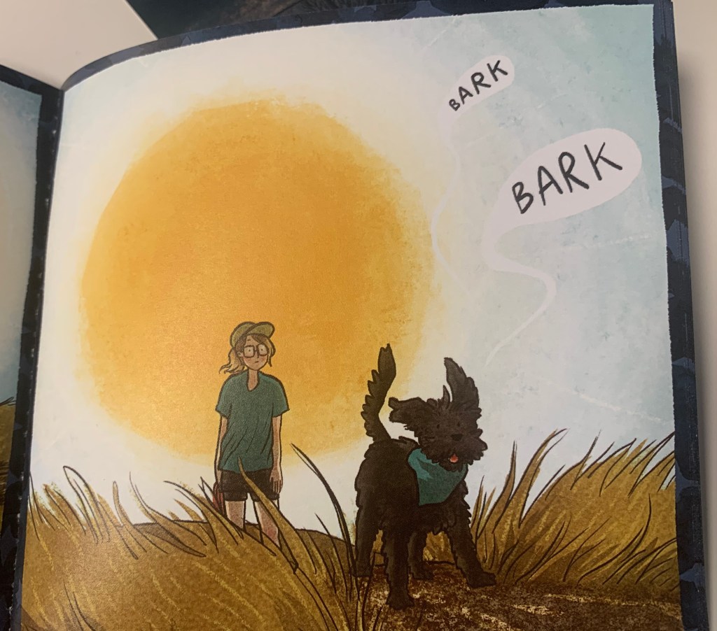 Like a single painting on a comics page the images also have a great sense of framing. Whether it be Lise and her dog out for a walk over a cornfield and through some standing stones all the time against the looming summer sun or Elise out at night and looking up at the stars through the shadowed branches of a tree. Lise can really shape a page.