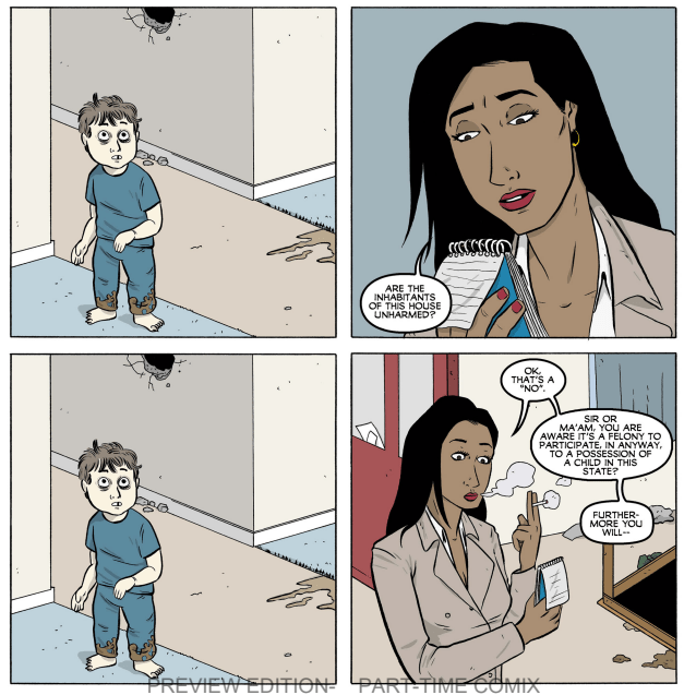 The Review – I just had a little watch of the upcoming Kickstarter video and the writer is American I am guessing. Although the spelling of ‘Mum’ in the opening sequence initially had me guessing differently. What Jon can be forgiven for not knowing is that in the UK the letters ‘CPS’ most commonly refer to ‘Crown Prosecution Service’ (the equivalent, broadly speaking, of the District Attorney in the US). These letters are also know as a more general term for ‘Child Protection Software’ which perhaps has a little more bearing on the story. After I first received the email with the review request this did rather confuse me. Who would bother to do comic about that dusty old establishment organisation The CPS?
