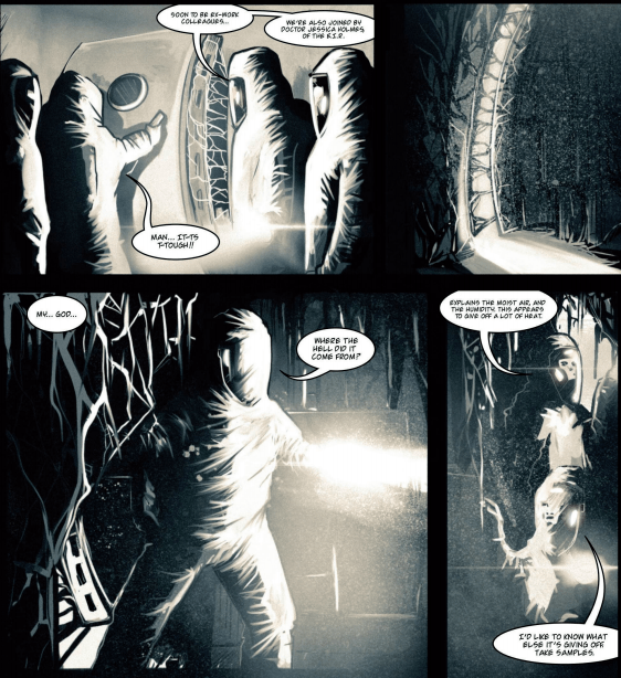 The Covers – I think that of the two covers we have seen so far that issue 1 is the stronger of the two. It has a nice horror aimed message with the diseased eye and lends itself to some foreshadowing of what is to come with the hazmat suited reflection. Although as with issue two’s cover the colouring is a little dull and to stand a chance of being noticed I would assert that something with a splash of colour would assist.