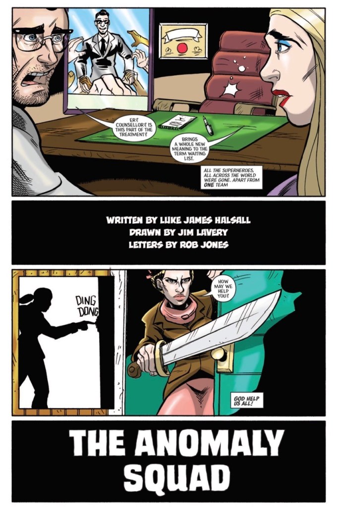 The Review – I got this comic through from the writer yesterday after he read my last post/mission statement. I’ve chatted to Luke a few times and he’s been a guest on the Awesome Comics Podcast. He describes this new comic as a cross between the Doom Patrol and The Umbrella Academy. You can certainly feel both those properties as you read through. There is an overall atmosphere of a group of powered individuals who are outsiders, awkward in their place in the world and bundled together as an argumentative and mismatched team.
