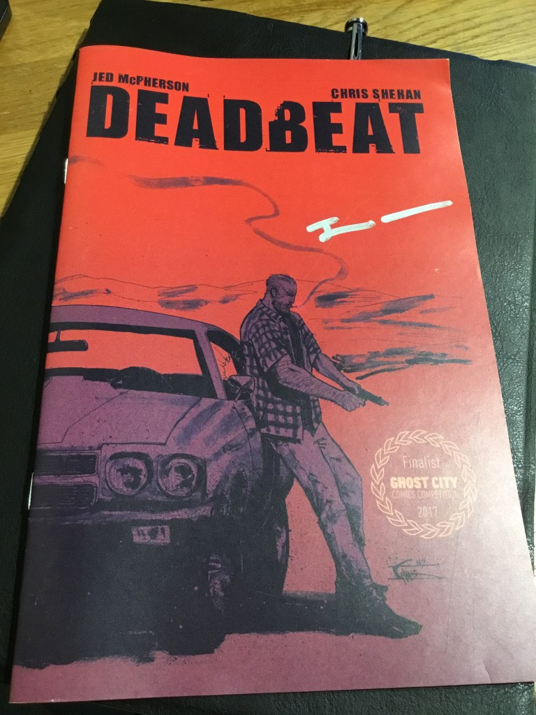 The Cover – I have what I’m guessing is a reprint of the comic as it mentions being a ‘Finalist – Ghost City Comics Competition 2017’. My copy also has four lines in a silver marker pen that I’m guessing is the autograph of one of the creators? They were clearly too busy to actually sign it with any effort.