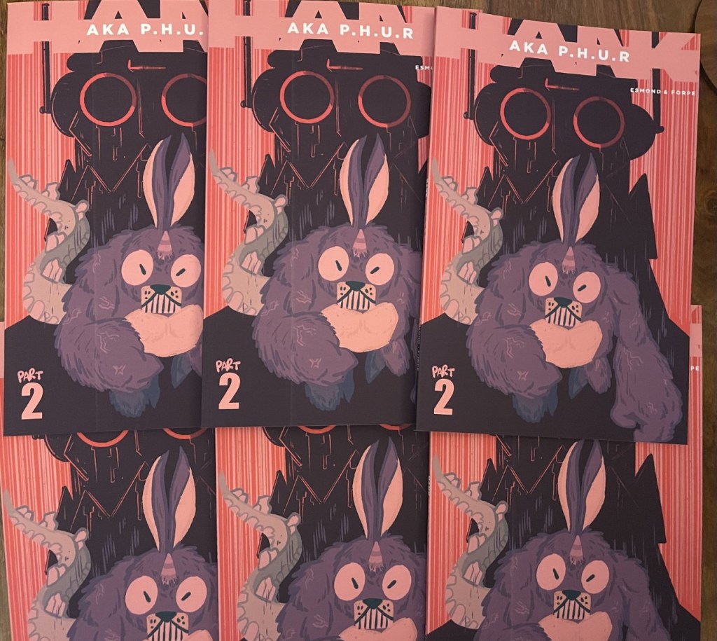 After the events of issue one and the discovery that the P.H.U.R. Technology has been implanted into him through his bum-hole our hero is on the run. The action ramps up and and has quite the crew of enemies to fight. Non-stop action with some interesting twists and turns.