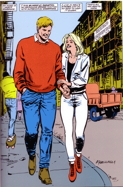 As I’m sure you’ll recall, at the end of those issues Matt and Karen are peachy. They walk down the street in Hell’s Kitchen hand-in-hand with big grins. They’ve both been through physical and psychological torture and come out the other side alive and better for it. Eamonn cleverly suggested to me that just maybe that should have been the end of the series. No reboots, no returns. Was he right?