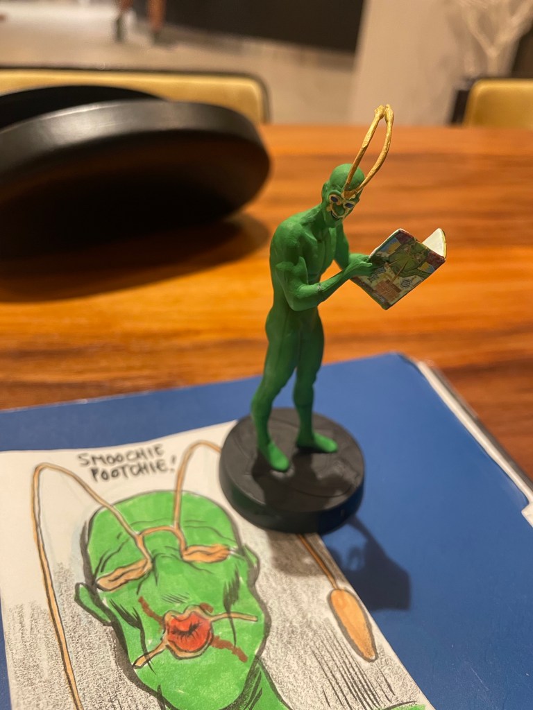 Cliff brought me this ace gift. A little hand drawn card welcoming me to Maryland featuring the mighty Ambush Bug, as well as a figure of the same fella. How cool is that!!