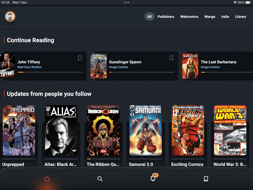 The digital reader is slowly collecting all the big comics names outside of Marvel and DC. Image and Boom Studios have sections as well as many of the other publishers. They’re also very inviting to the Indie and Small Press field and many of our buddies have planted a flag on there already. For £9.99 I had already read more than my money’s worth after a couple of hours and continue to sink time daily into catching up on series I had missed previously from AWA, Vault, Avery Hill etc.