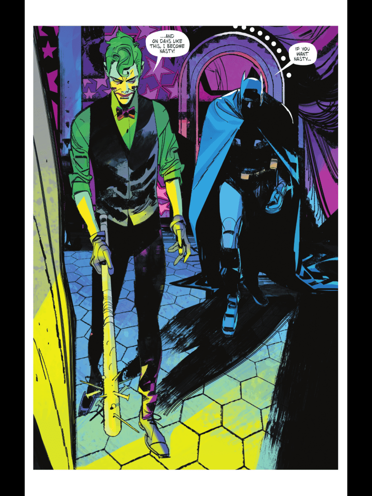 I won’t ruin any of the story as it only came out yesterday. But there is one moment where we hear from Batman about what he thinks he is. What his role is. What his mission is. Simply and pragmatically told by Batman, but done with poignancy and totally in character. When you think about it, what he says is obvious really. It just took some Italian dudes to tell us. No massive gang of Bat-People. No overly complicated events that spread over thirty odd titles. Just a single moment of conversation. Beautiful writing.