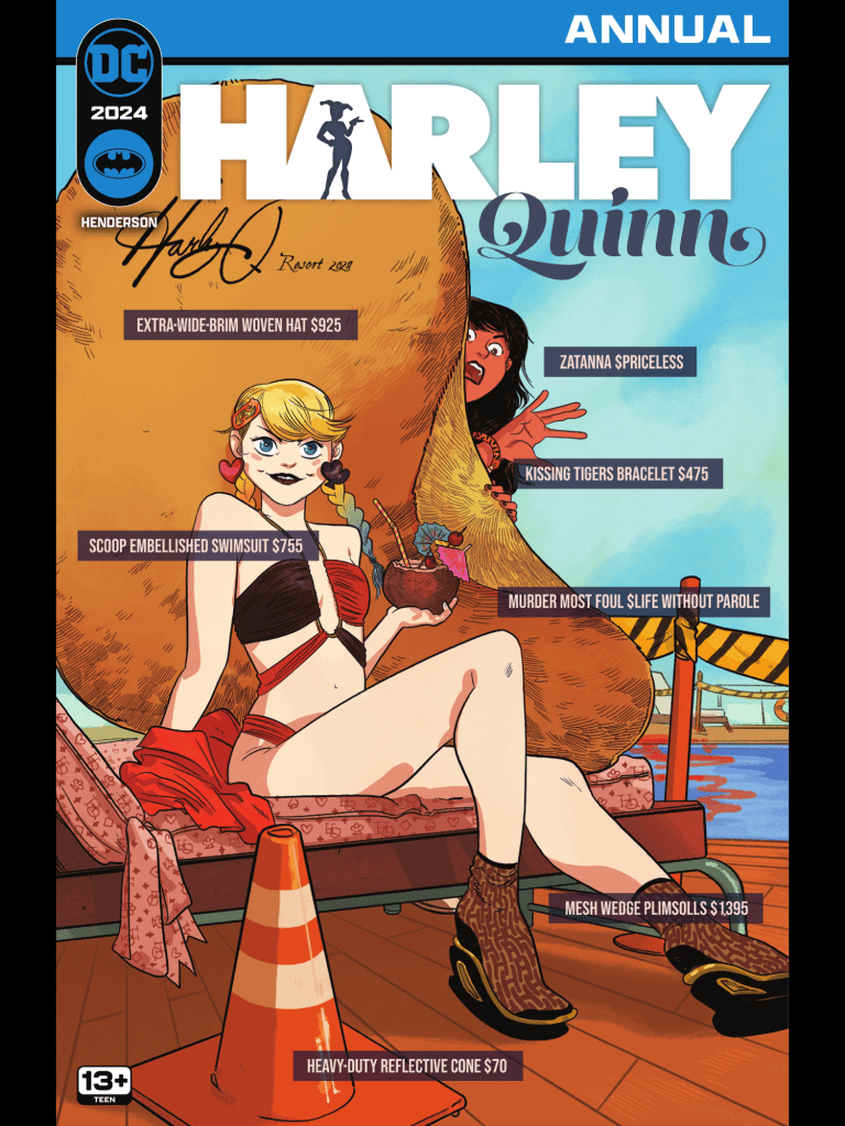 But this Harley Quinn issue (what’s up with that logo btw, and why is it signed again on the left?) with it’s dead-eyed character drawing front and centre was just a mess. Plus, is that a rock she is sitting on or a chair? I’m guessing the text on the cover is mean’t to look like a social media tagging thing? It doesn’t work.