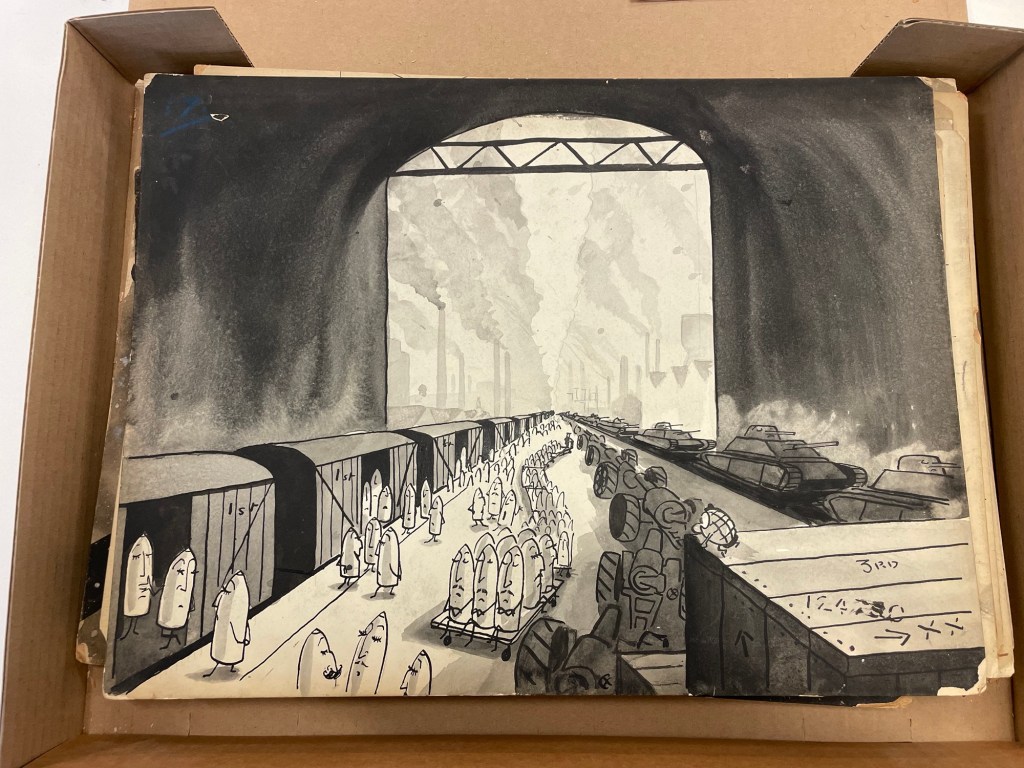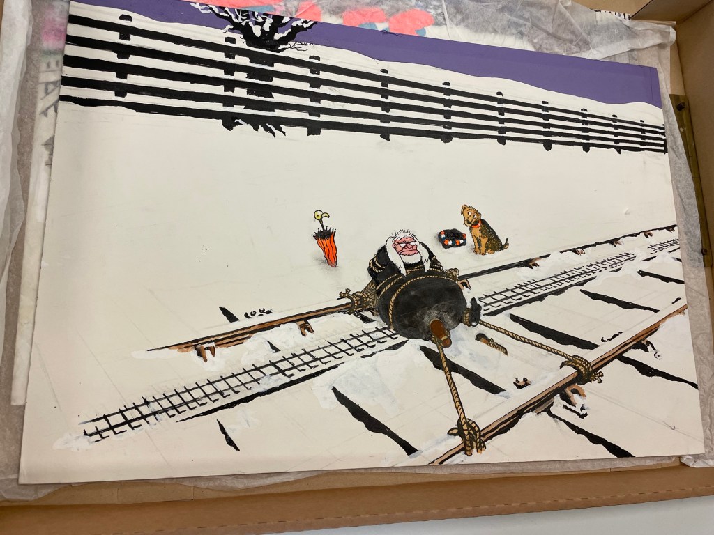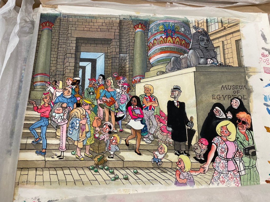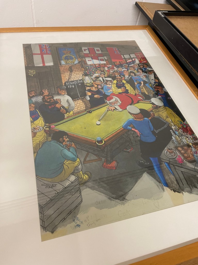 So, myself and Eamonn began our research. You’ll hopefully hear the podcast today, but we also hit the road. Thanks to the University of Kent ‘Carl Giles’ Trust Collection and the brilliant curator there Christine we travelled to Canterbury. They hold a breathtakingly extensive collection of around 6500 original pieces of art as well as reference files and books. Shelves and shelves of them!