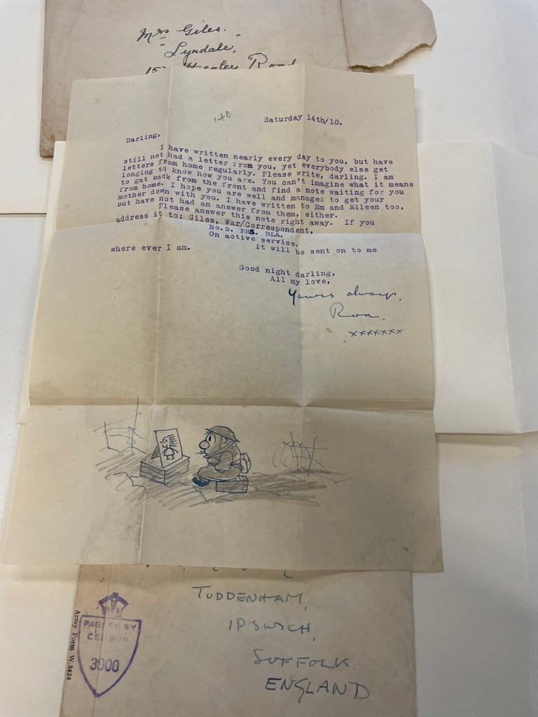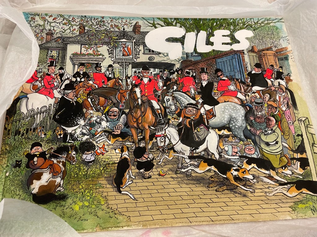 When Giles died in 1995 his entire studio and related materials got passed to a group of trustees. This all stayed in storage until 2005 when it was transferred to the British Cartoon Archive at the University of Kent. Coincidentally housed next to Giles Lane (we are still not sure if that is a coincidence or not!) And thanks to Christine, myself and Eamonn had a good few hours to look through and hold the original art and all the rest of the things Giles kept.