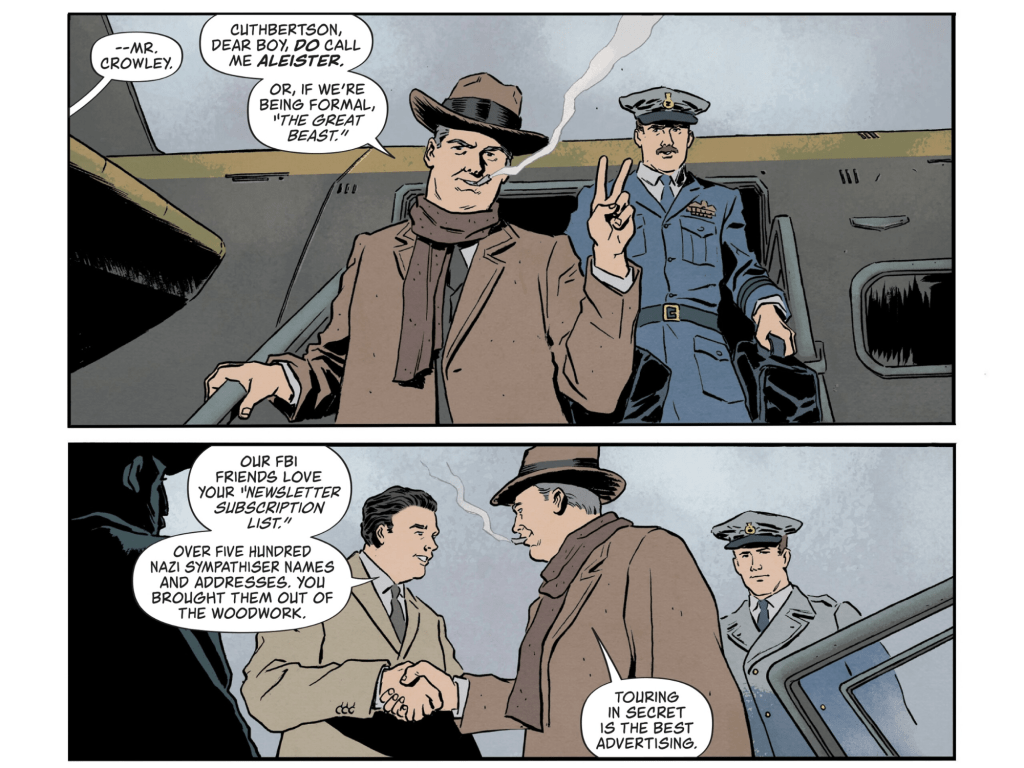 The above looks OKish but it just strikes me as a massively obvious piece of storytelling. It includes all the obvious characters in its own sort of half-arsed Moore attempt. But none of the style, edge or depth. It opens in such a boring way that I feel like it needed a strong editor to tell the team to, “For God’s sake can we just try and make it even a little bit interesting to a reader?” And why is the cover so unremarkable? Who decided it should look like a half finished colouring book?