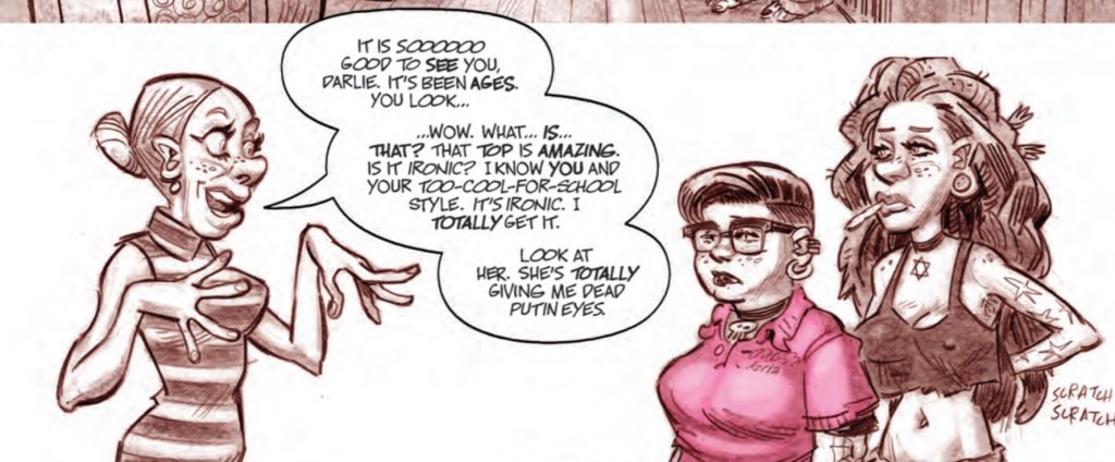Bob Fingerman is the greatest comics creator that we are not talking about enough. This is a love letter to his little area of New York before he moved to Hollywood. It’s full of grubby weirdos, mad-eyed street people, sane/insane relatable punks and hipsters, outsiders and deluded dumbos. It’s all of inner city life that is at once current, yet could be the eighties.