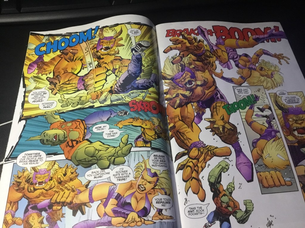 Spoilers – Dragon gets a massive kicking. One of the things I’ve always loved about Larsen is his ability to show a punch being thrown and how it lands. Unlike a lot of artists elsewhere you feel that he knows the reality of a good smack in the gob. (If anyone feels a need to do some research, give me a call.)