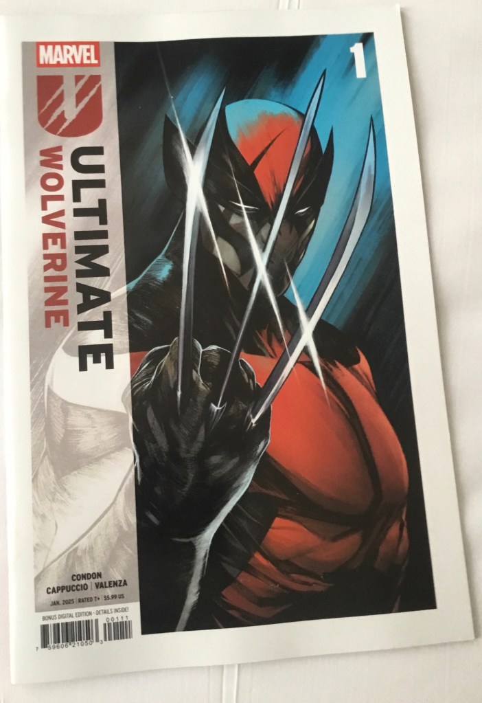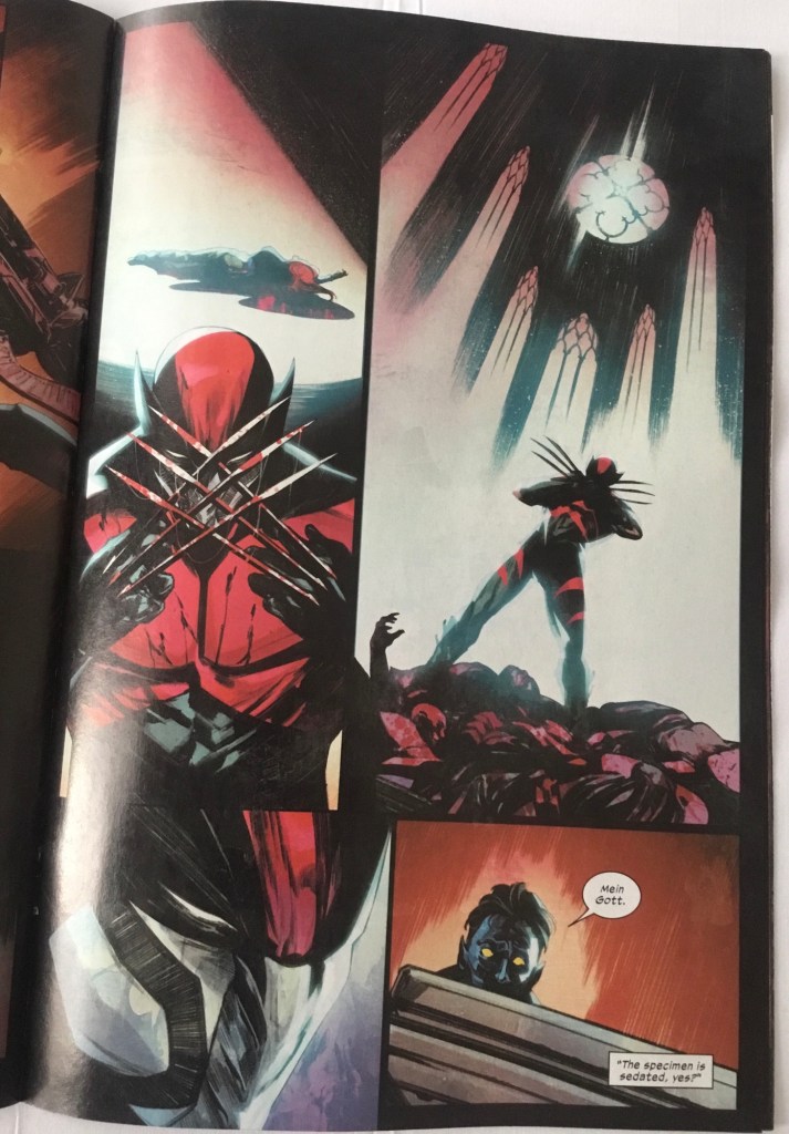 Speaking of low points. This under-cooked nonsense was complimented by a text page that was barely legible and a professional graphic designer’s bad dream! I got F all out of this crap. Wolverine has a full mask and the script and art did not make up for their being shit-all story worth reading. The Ultimate Universe seems to be a range of one stinker after another. Avoid.