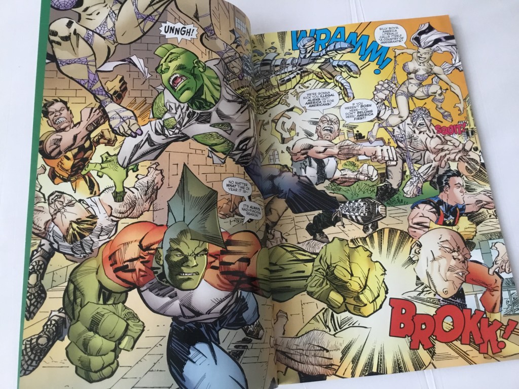 It’s been a Finnish Age since Dragon made the ‘Tops’ here. I’ll admit to a small slice of disillusionment over his ‘point to prove’ cover a while back. (Don’t make me and my wallet part of your stupid internet argument) But this weekend I was sat in a London cafe waiting for some buddies and reading the pull pile. NOTHING (yes, capitals) was closing in of the competent for me (see below). I was moaning on to Dan on WhatsApp when SG floated to the top of the new read pile. My last nerve on my last hope. And it came through with stars. Big kick-offs, great art, maybe a death and an all-round 100 pages of superb new and old material.