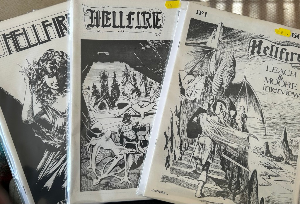 I managed to get issues 1-3 of the early eighties ‘Hellfire’ fanzine this weekend at the London Comic Mart for some reasonable prices. Produced by David Roach and Ian Jenkins these have some cracking comics, interviews and features. The first issue has an interview with Gary Leach and Alan Moore, issue 2 features David Lloyd and three John Ridgway.