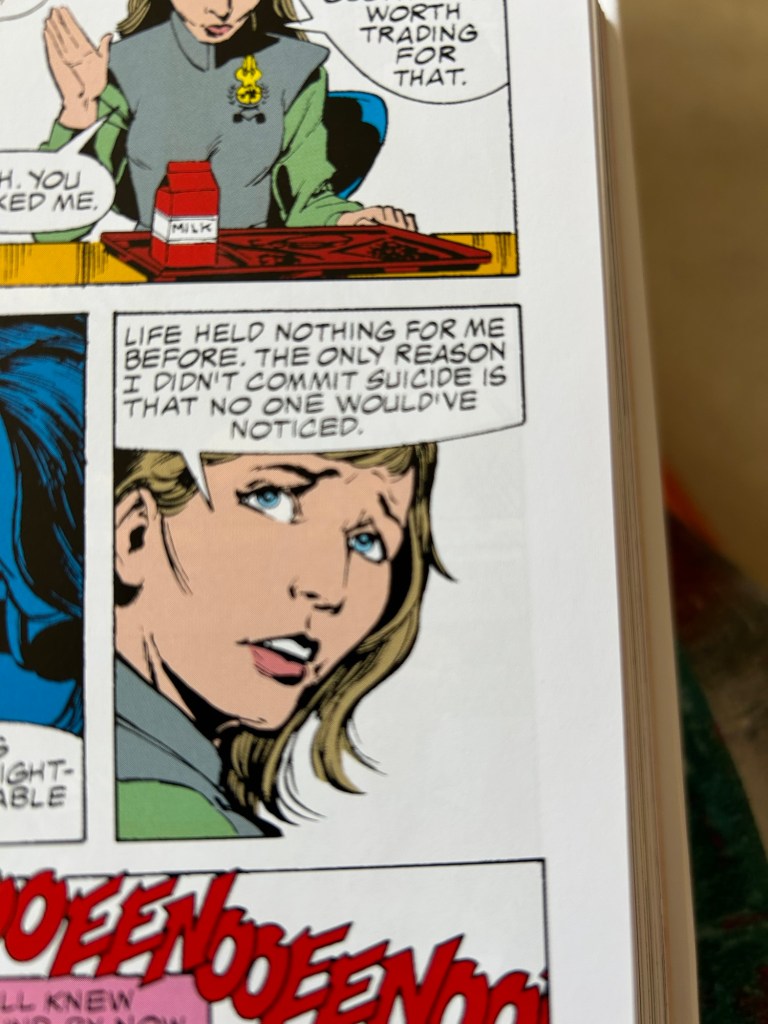 It has themes of heroism, selfishness and mortality but also deals early on with moments of suicide that are discussed between the cast. I never read this at the time, and catching up now.