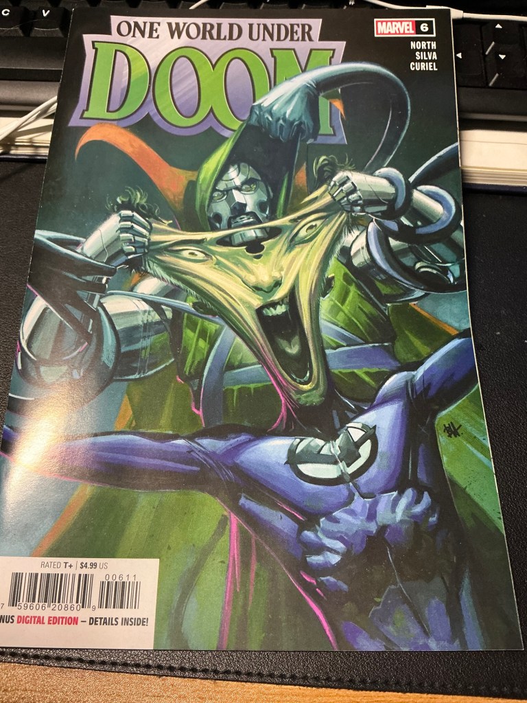 Doom and Reed enter a win-all/lose-all debate that never rises above the stupidly obvious. Meanwhile a team of heroes breach the force field around Latveria. It’s fairly trite, needs someone to explore it with actual depth and comes over like a too easy win that makes you wonder if that’s down to bad writing or plot. I liked the cover.
