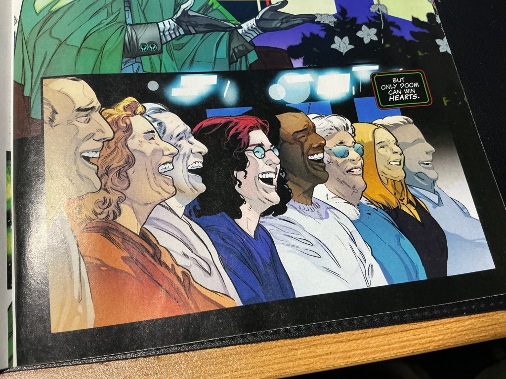 But it was the ‘too referenced’ art that kept annoying me. Surely the ‘reference’ here is from an audience at a comedy show? And wtf happened to that dude on the end? So underdrawn I wondered if the debate audience were disappearing due to some Vanishing Ray being deployed by a Doombot….. nope, just a bit of rushed/shit ‘referenced’ art.