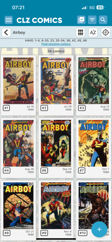 I’ve now settled back at home as the winter creeps in with the intention of cataloguing the collection using the CLZ app (no I don’t know what that stands for – look it up yourself you lazy fuck). I’m pretty impressed with it so far and am aiming to manage about a thousand a week into the program. It allows you to scan covers, list manually or use a barcode to add issues in the database. Here’s a little example of how it looks.